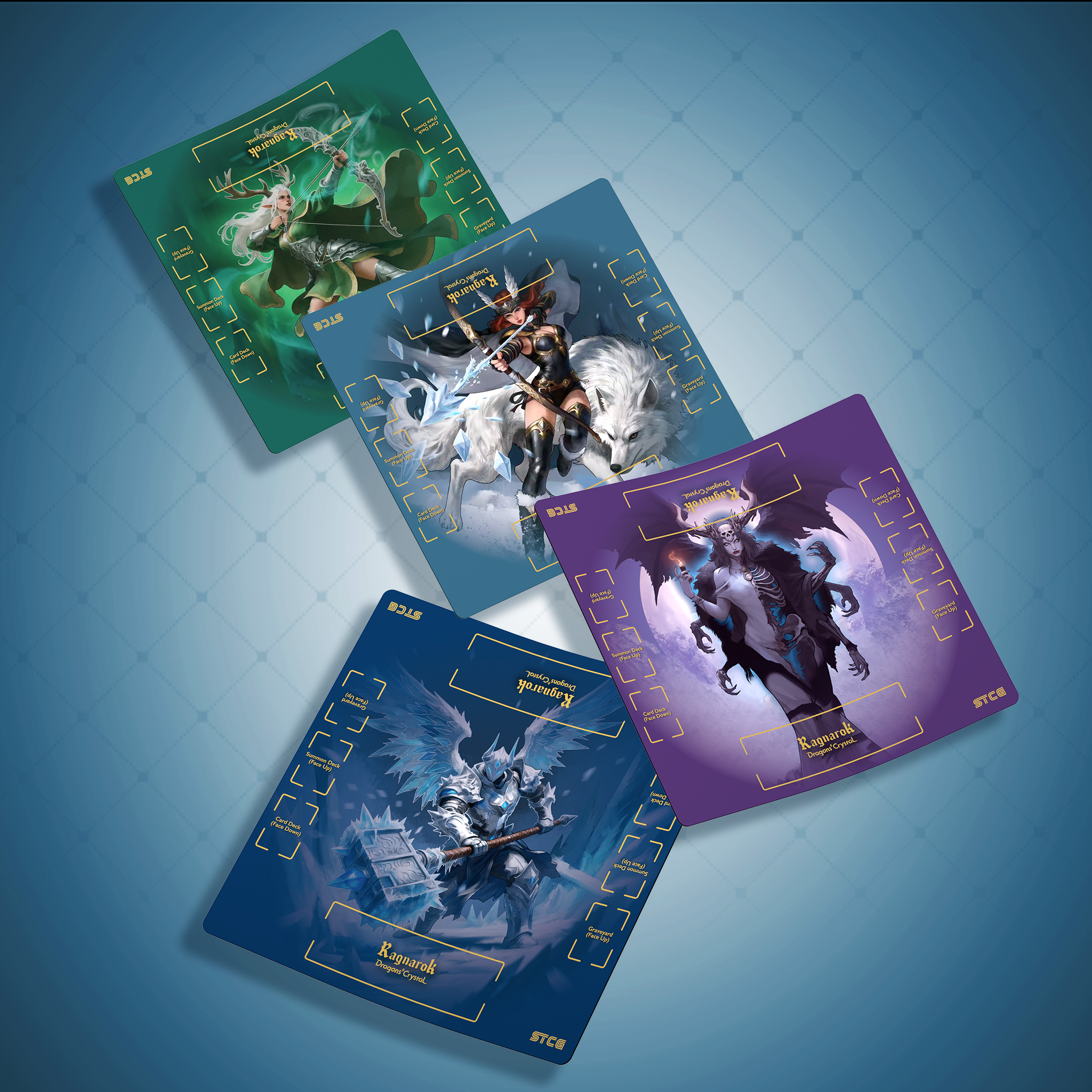 we have four fully customized playing mat to choose from, godness of death Hela, godness of winter, Skadi, and Dragonknights, Kyle.